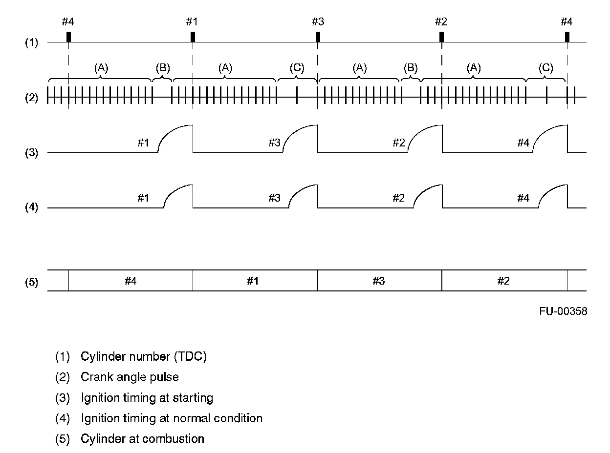 - The ECM judges that the No.1 and No.2 cylinders are at TDC when it detects the range (B), and that the No.3 and No.4 cylinders are at TDC when it detects the range (C).