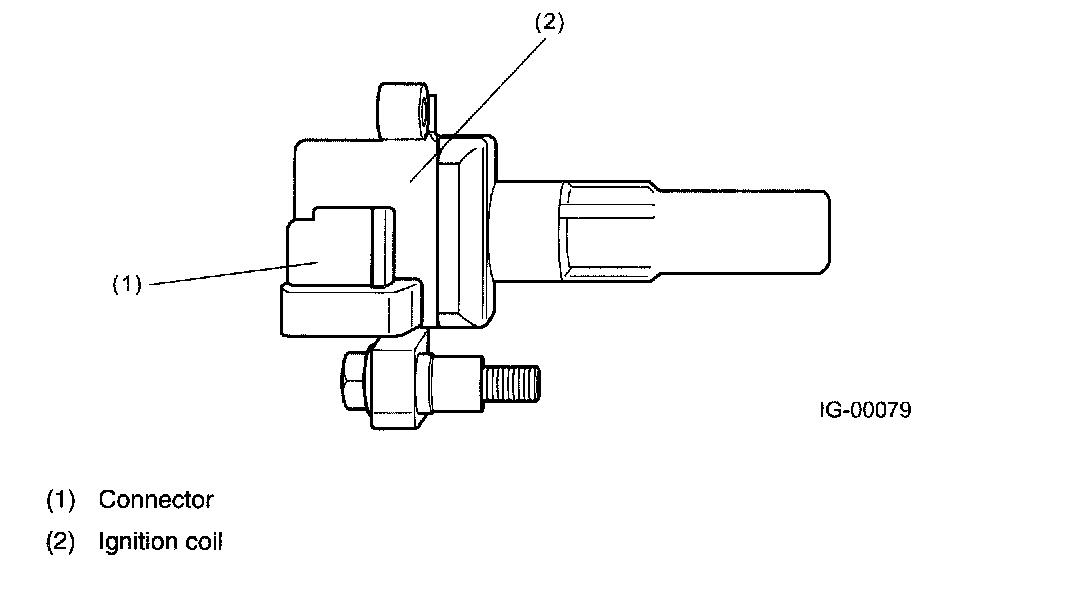 The secondary terminal of the ignition coil is in contact with the spark plug terminal nut. Since no spark plug cable is used, secondary voltage drop, leaks, or other problems that are inherent in a system using spark plug cables do not occur. The result is high performance and high reliability.