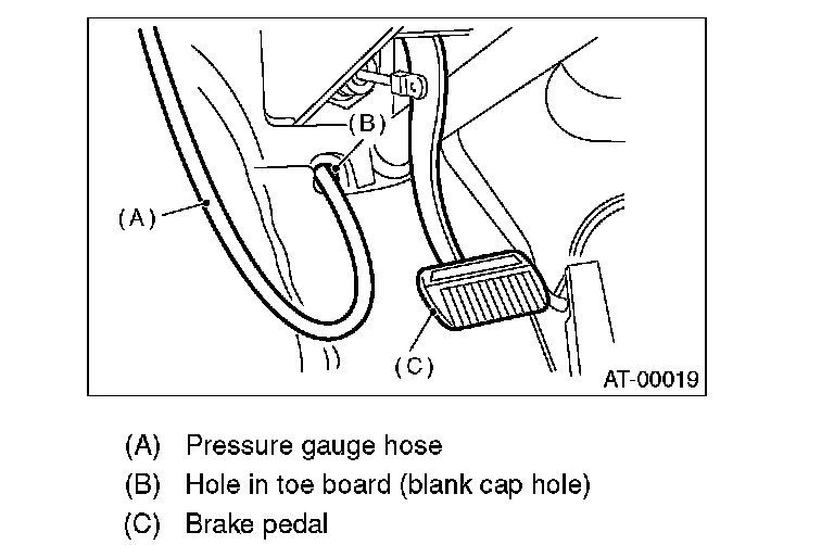 1. Before measuring the line pressure, apply both foot and parking brakes with all wheels chocked (Same as for stall test conditions).