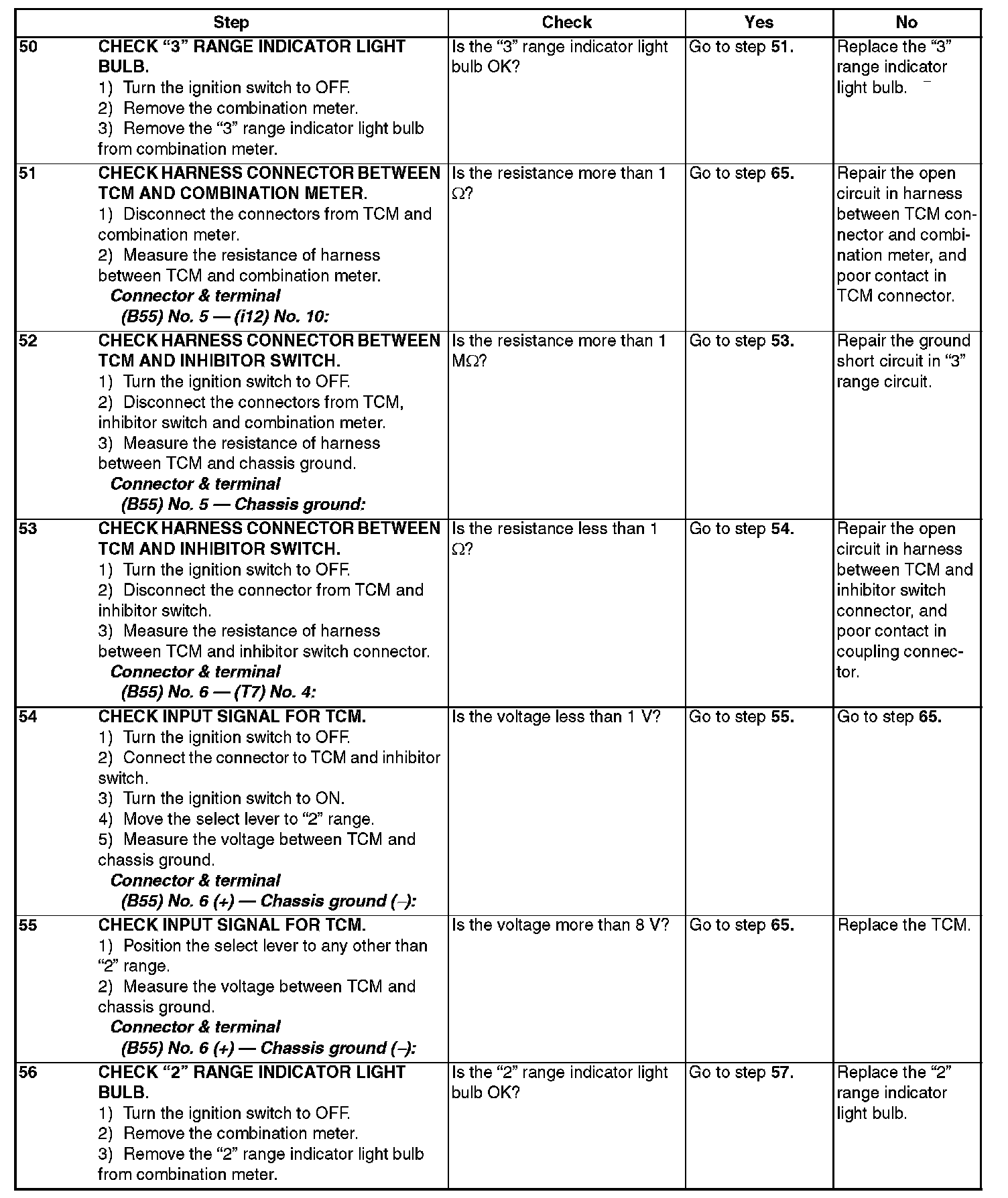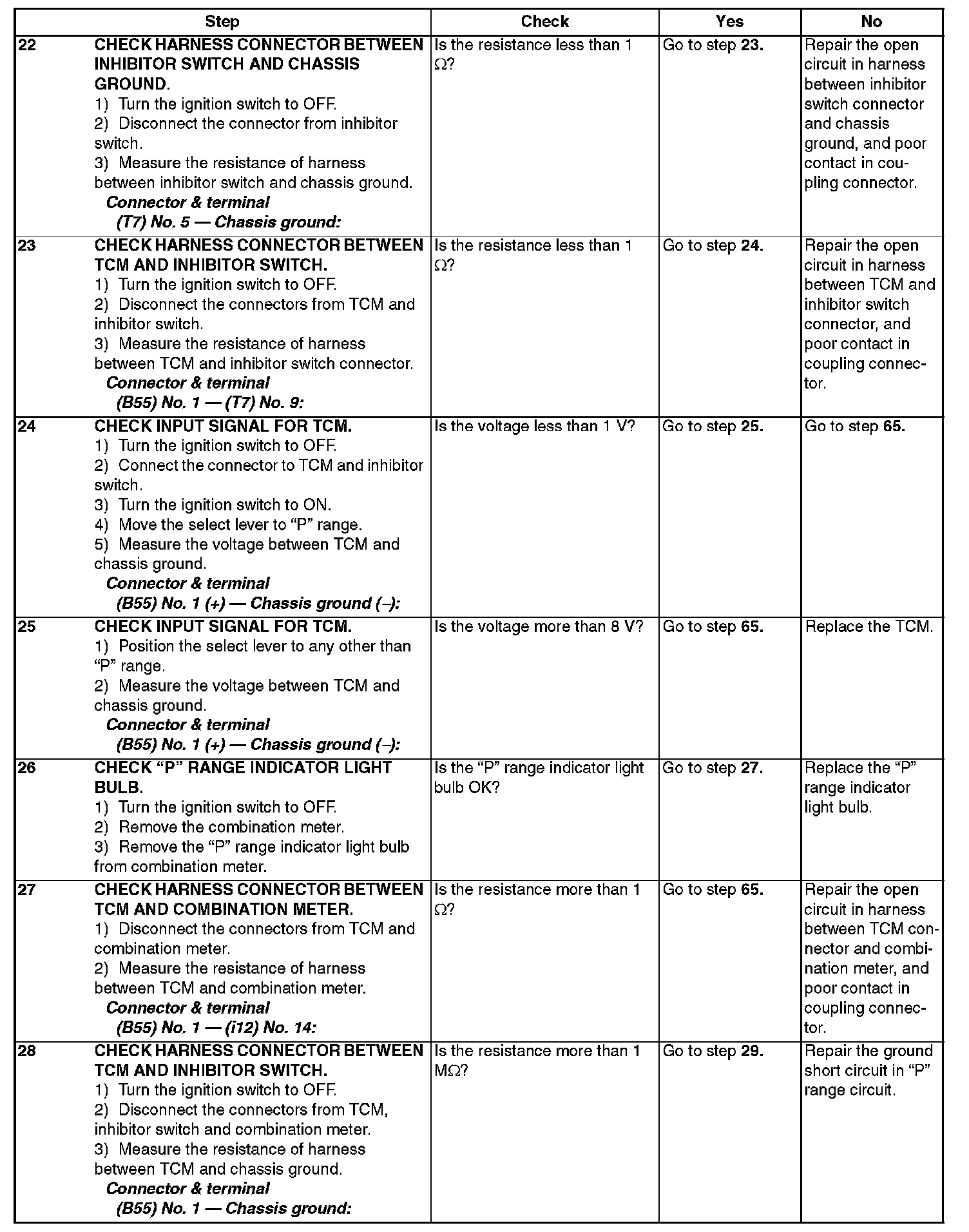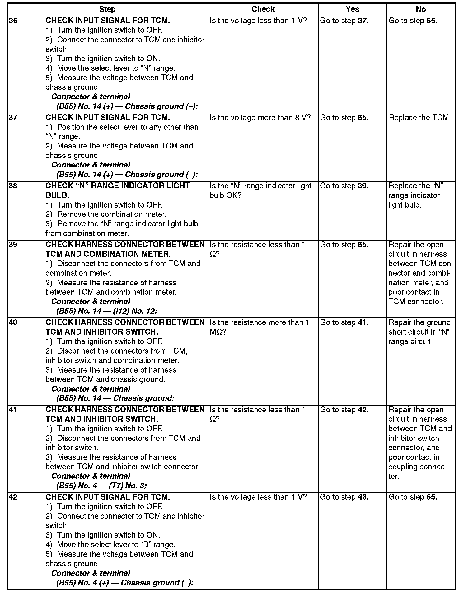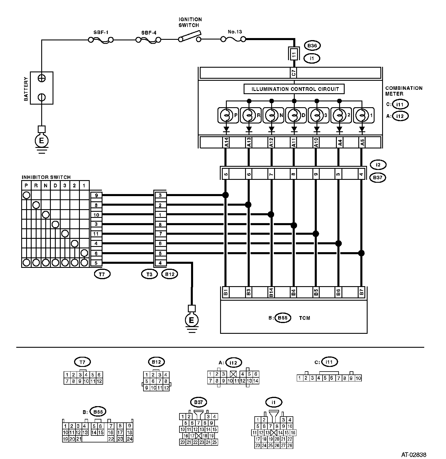 The input signal circuit of inhibitor switch is open or shorted.