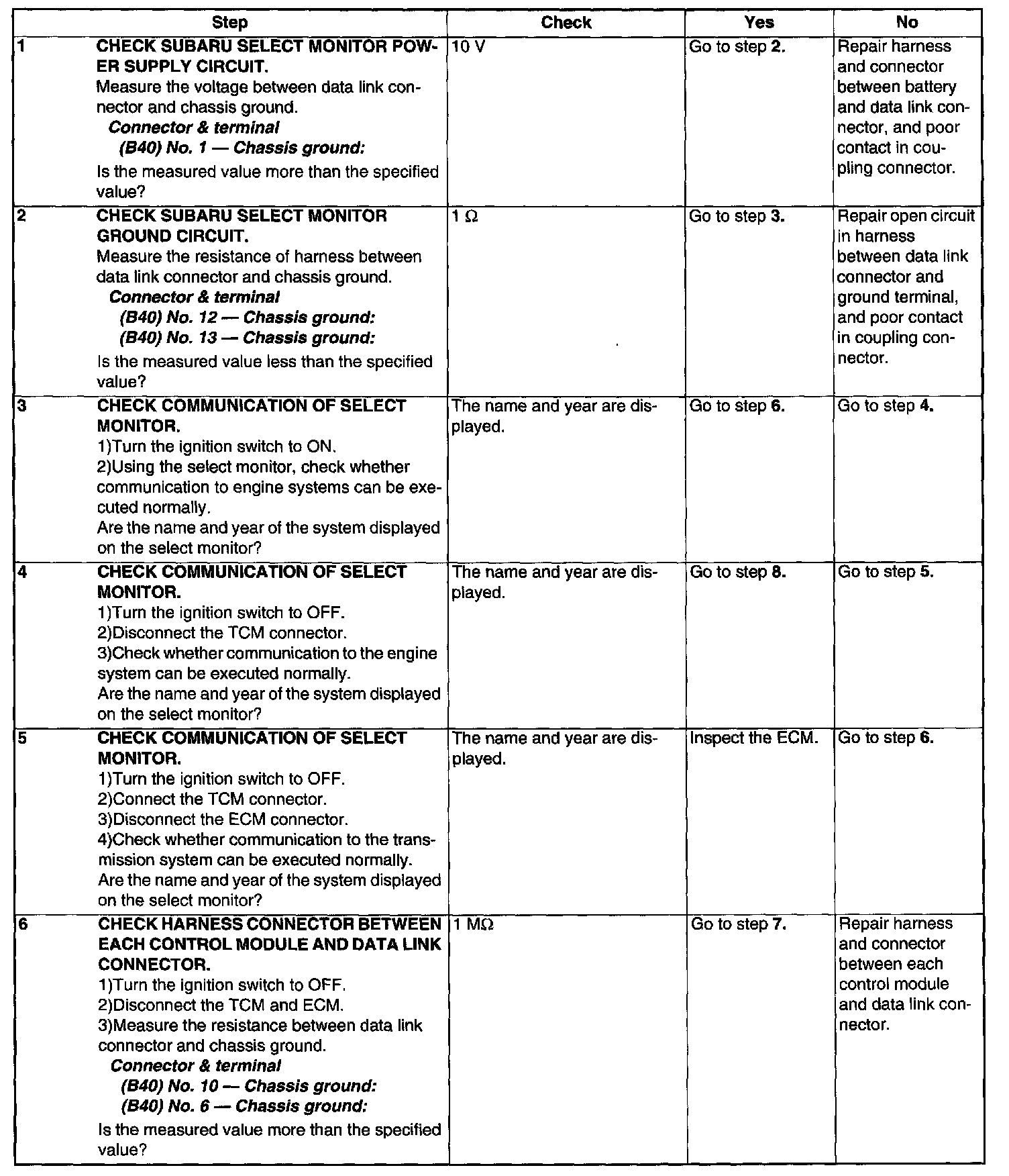 Diagnostic Procedure for Select Monitor CommunicationCOMMUNICATION FOR INITIALIZING IMPOSSIBLE