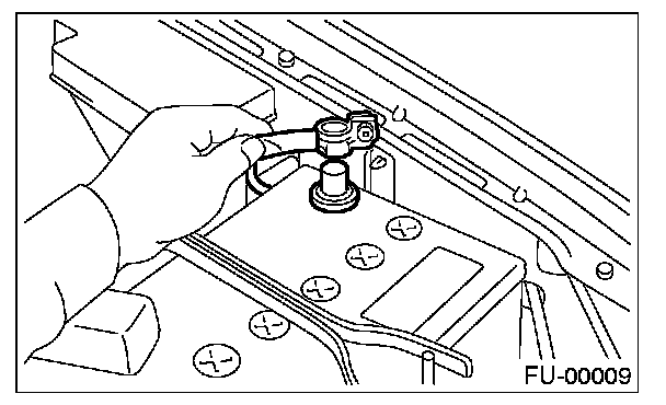 CAUTION- When servicing a vehicle, be sure to turn the ignition switch to OFF, disconnect the ground cable from battery, and wait for more than 20 seconds before starting work.