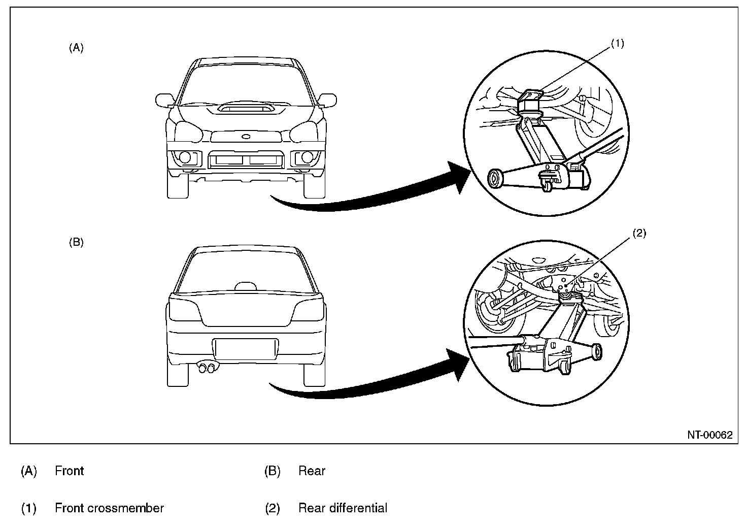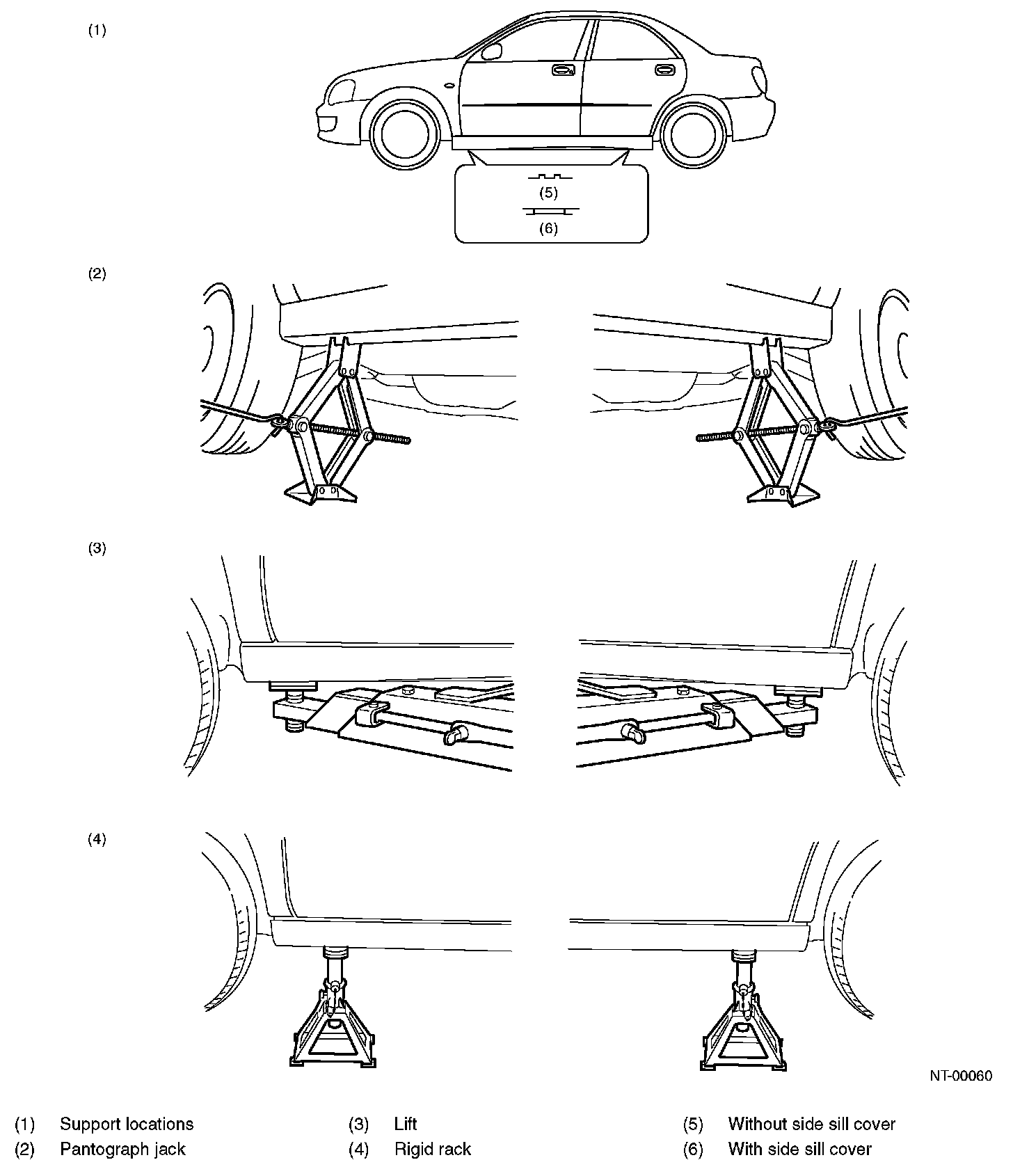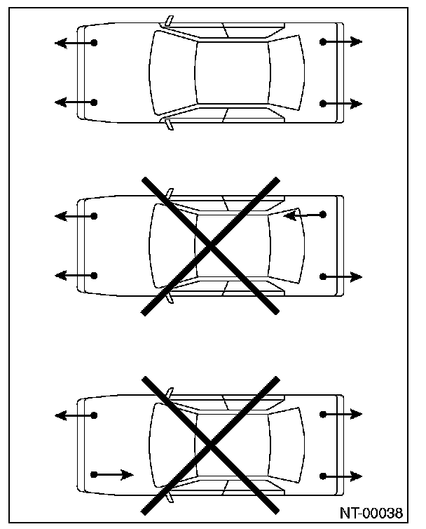 When using a lift or jack to raise a vehicle, always follow instructions concerning jack-up points and weight limits to prevent the vehicle from falling, which could result in injury. Be especially careful to make sure the vehicle is balanced before raising it. Be sure to set the wheel stoppers when jacking-up only the front or rear of the vehicle.