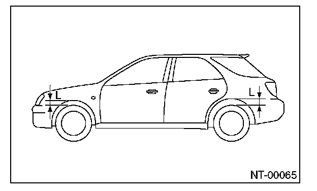 Measure the distance L between tire highest point to arch highest point before tie-down and after tie-down. Difference of measurement value (drop height) shall be within 50 mm (1.97 in). Make sure to fix the vehicle securely.