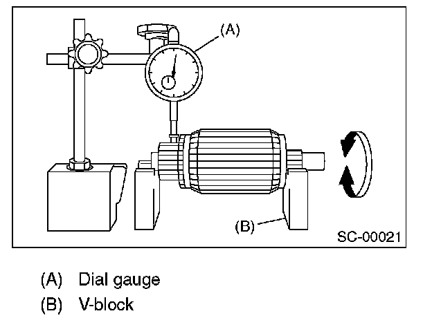 Check the commutator run-out, and then replace if it exceeds the limit.