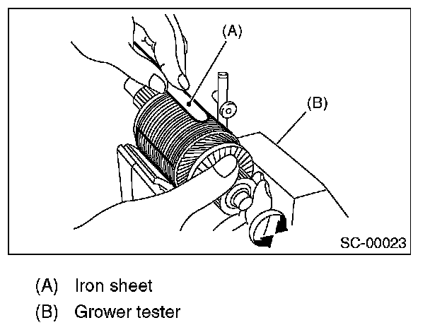 Check the armature for short-circuit by placing it on a growler tester. Hold an iron sheet against the armature core while slowly rotating armature. A short-circuited armature will cause the iron sheet to vibrate and to be attracted to core. If the iron sheet is attracted or vibrates, the armature, which is short-circuited, must be replaced or repaired.