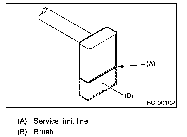 Measure the brush length, and then replace if it is worn down to under the service limit.