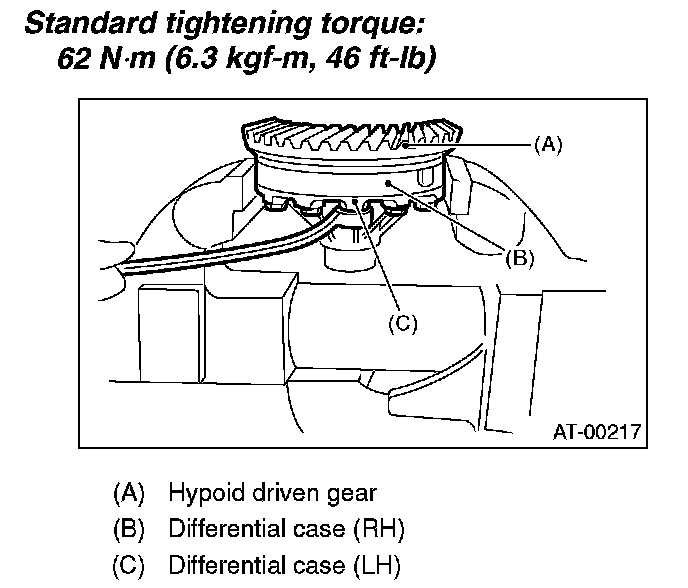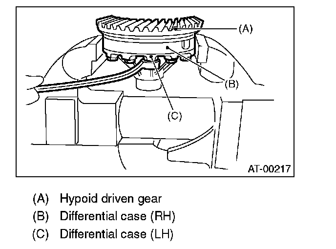 1. Install the differential assembly to the case, paying special attention not to damage the inside of the case (particularly, the differential side retainer contact surface).