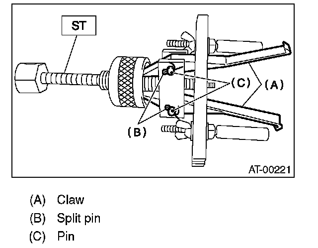 1. Using a press and ST, remove the taper roller bearing. ST 498077000 REMOVER