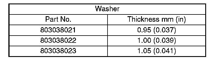 3. If backlash is not as specified, select a washer from the table below.
