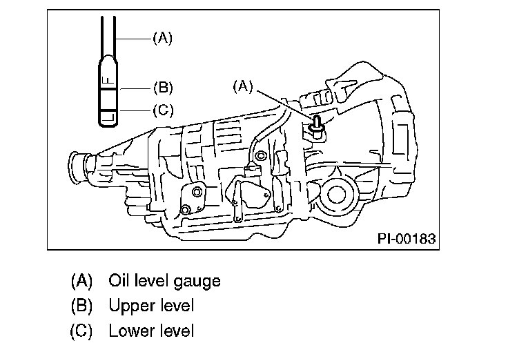 4. Remove it again and note the reading. If the differential gear oil level is below the L line, add oil to bring the level up to the F line.