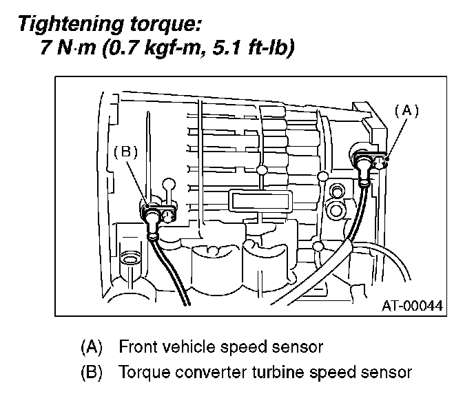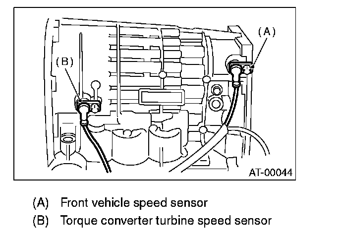 9. Install the front vehicle speed sensor and torque converter turbine speed sensor, and then fasten the harness.