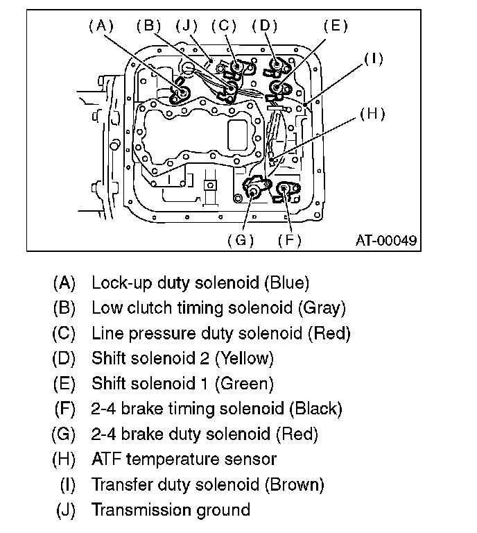 23. Remove the duty solenoids connector and ATF temperature sensor. Remove the connectors from clip and disconnect the connectors. (Turbo model)