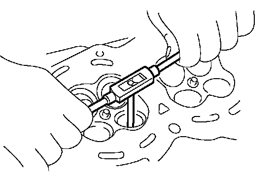 7 Ream the inside of valve guide using ST. Put the reamer in valve guide, and rotate the reamer slowly clockwise while pushing it lightly. Bring the reamer back while rotating it clockwise. After reaming, clean the valve guide to remove chips.