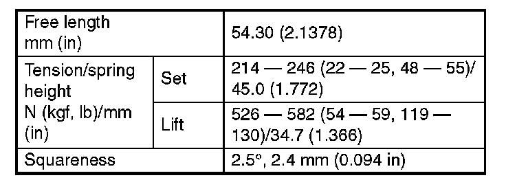 1. Check the valve springs for damage, free length, and tension. Replace the valve spring if it is not within the standard value presented in the table.