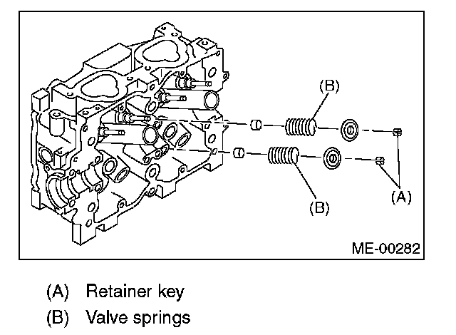 2. Set the ST on valve spring. Compress the valve spring and remove the valve spring retainer key. Remove each valve and valve spring.