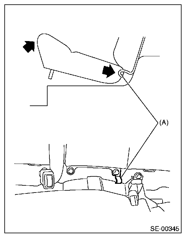 2. Remove the hook (A) by pushing it backward while lifting up the front side of seat cushion to detach seat cushion.