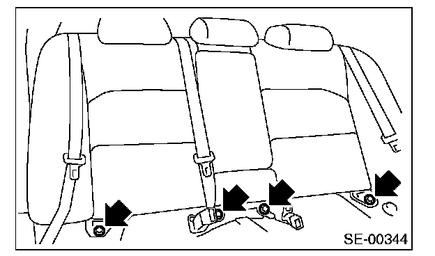 8. Remove the lower anchor bolt (A) of outer seat belt and backrest shoulder bolt (B).