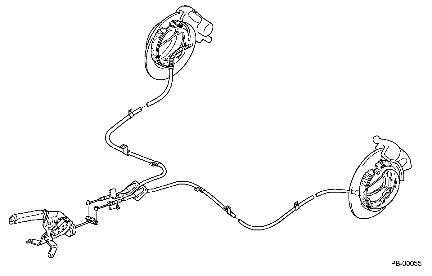 Each rear disc brake rotor contains a drum brake mechanism which is used exclusively for the parking brake.