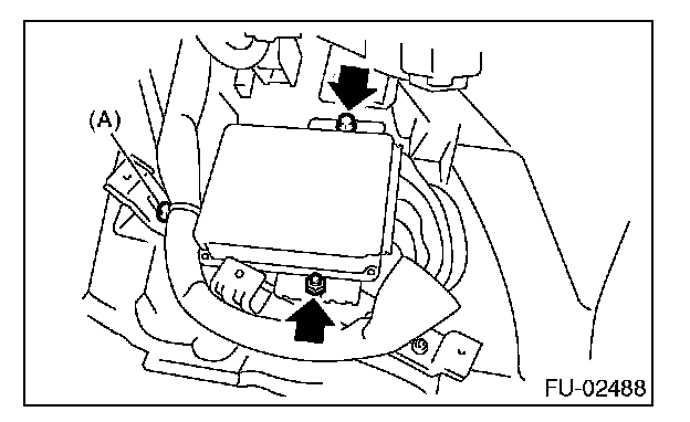 5. Remove the bolt and nut which hold the ECM to bracket.