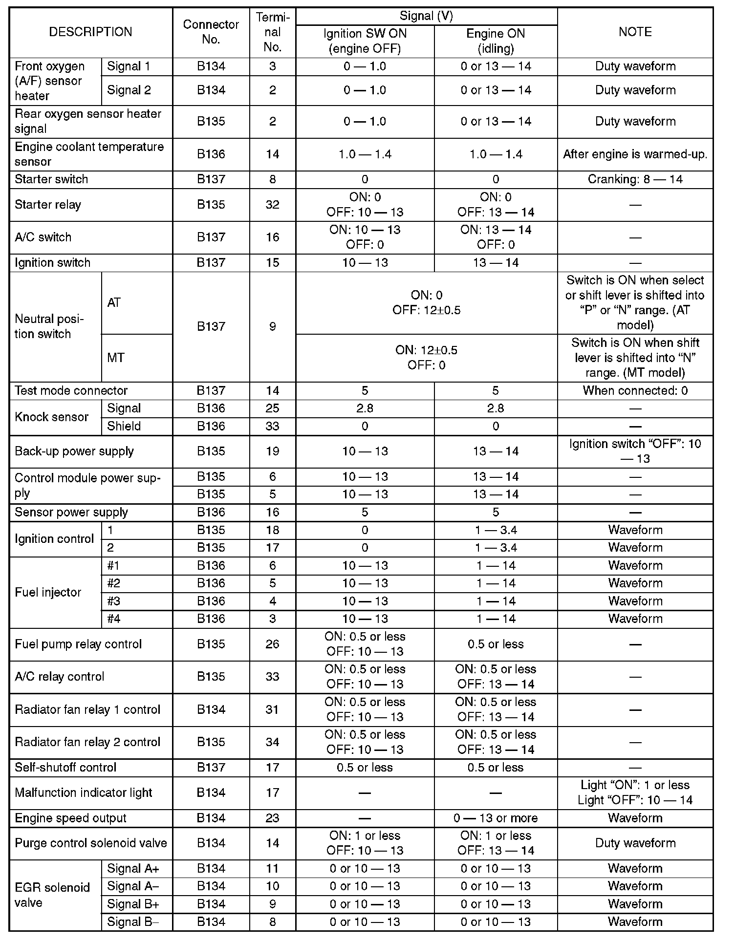 Engine Control Module (ECM) I/O Signal (Part 4):