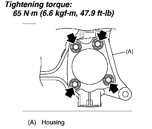 Tightening torque: 65 Nm (6.6 kgf-cm, 47.9 ft. lbs.)