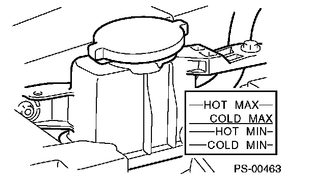 2. Check at power steering fluid temperature 80°C (176°F); read the fluid level on the HOT side.