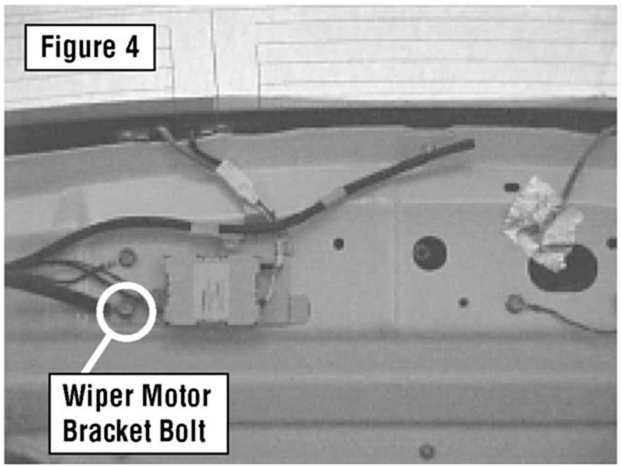 4) Remove the bolt from the rear wiper motor bracket (motor end) and install the round terminal end of the radio cord assembly and reinstall the bolt.