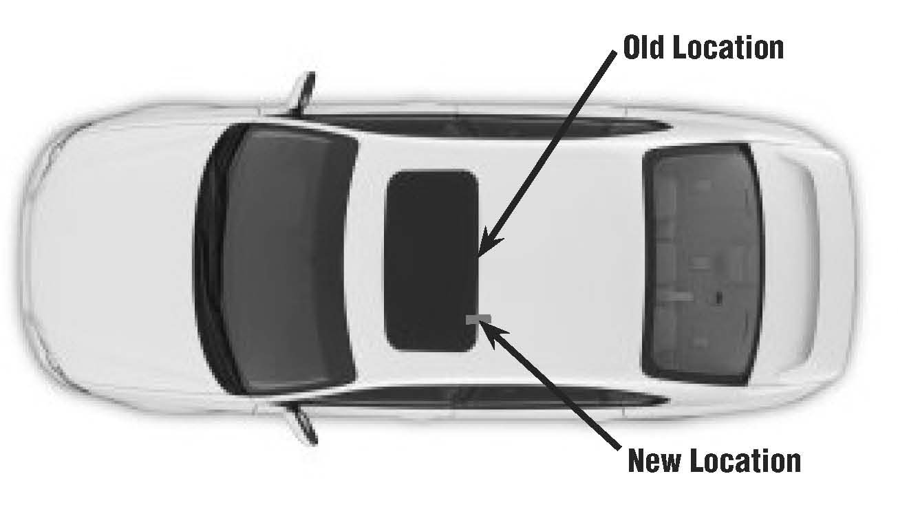 The purpose of this bulletin is to provide the new location for the mating portion of the sun-roof opening trim (headliner) The location has changed from the center rear to the left rear corner which will permit the trim to adhere better.