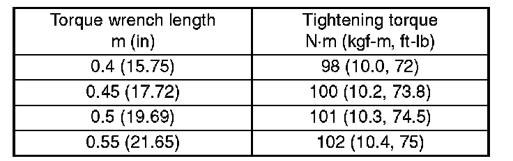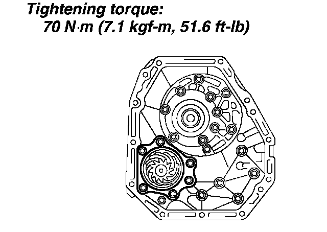 Tightening torque: 70 Nm (7.1 kgf-cm, 51.6 ft. lbs.)