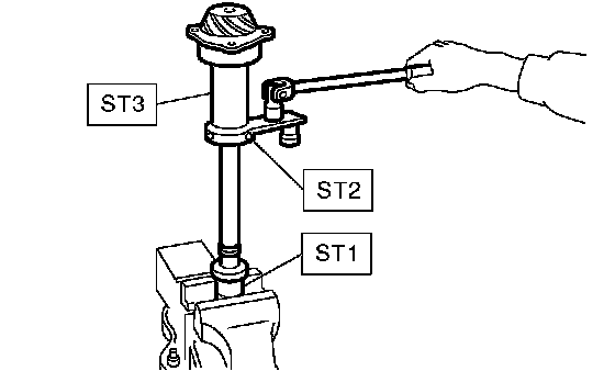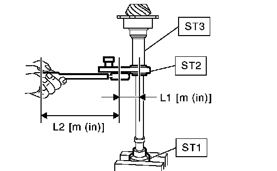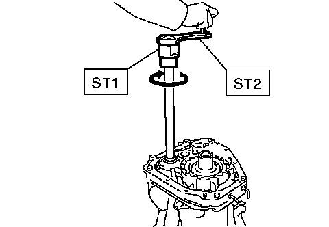 3. Rotate the drive pinion several times using ST1 and ST2.