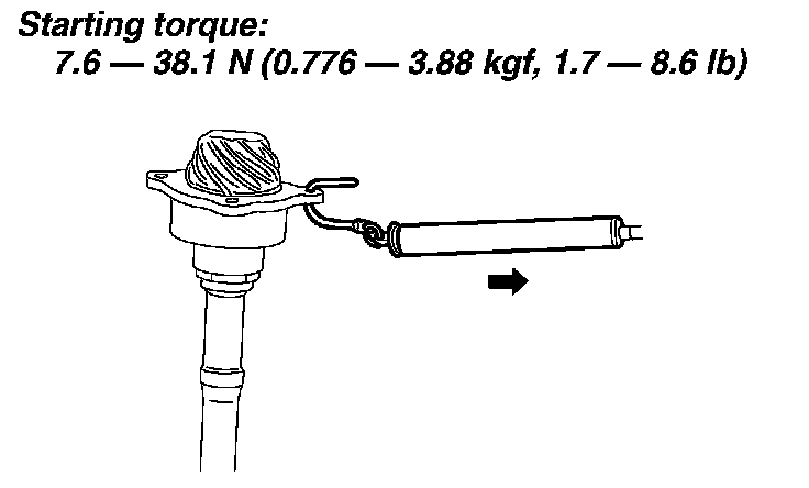 6. Measure the starting torque of bearing. Make sure the starting torque is within the specified range. If the torque is not within specified range, replace the roller bearing.