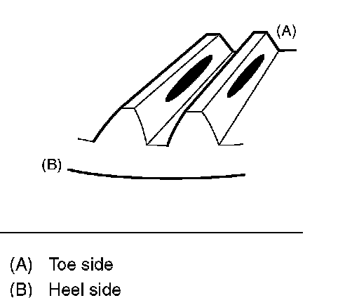 Checking item: Tooth contact pattern is slightly shifted toward to toe side under no-load rotation. [When loaded, contact pattern moves toward heel.]