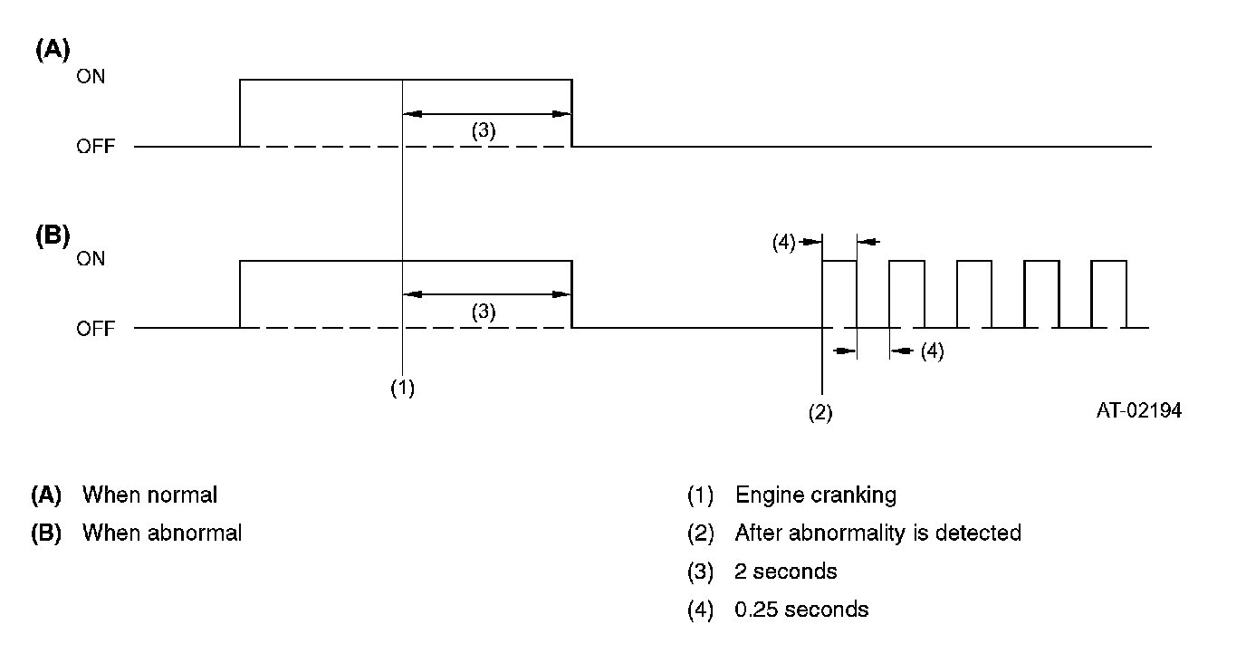 OPERATION OF SPORT INDICATOR LIGHTOn starting the engine, the SPORT indicator light illuminates and then goes out as shown in the Normal diagram. If any problem exists, the light continues flashing as shown in the Abnormal diagram.