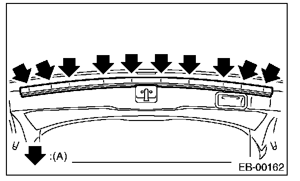 11. Remove the weather strip clips (A), and remove the rear gate panel weather strip.