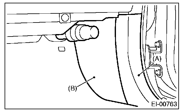 7. Remove the passenger side front inside scuff plate (A) and front pillar lower trim (B).