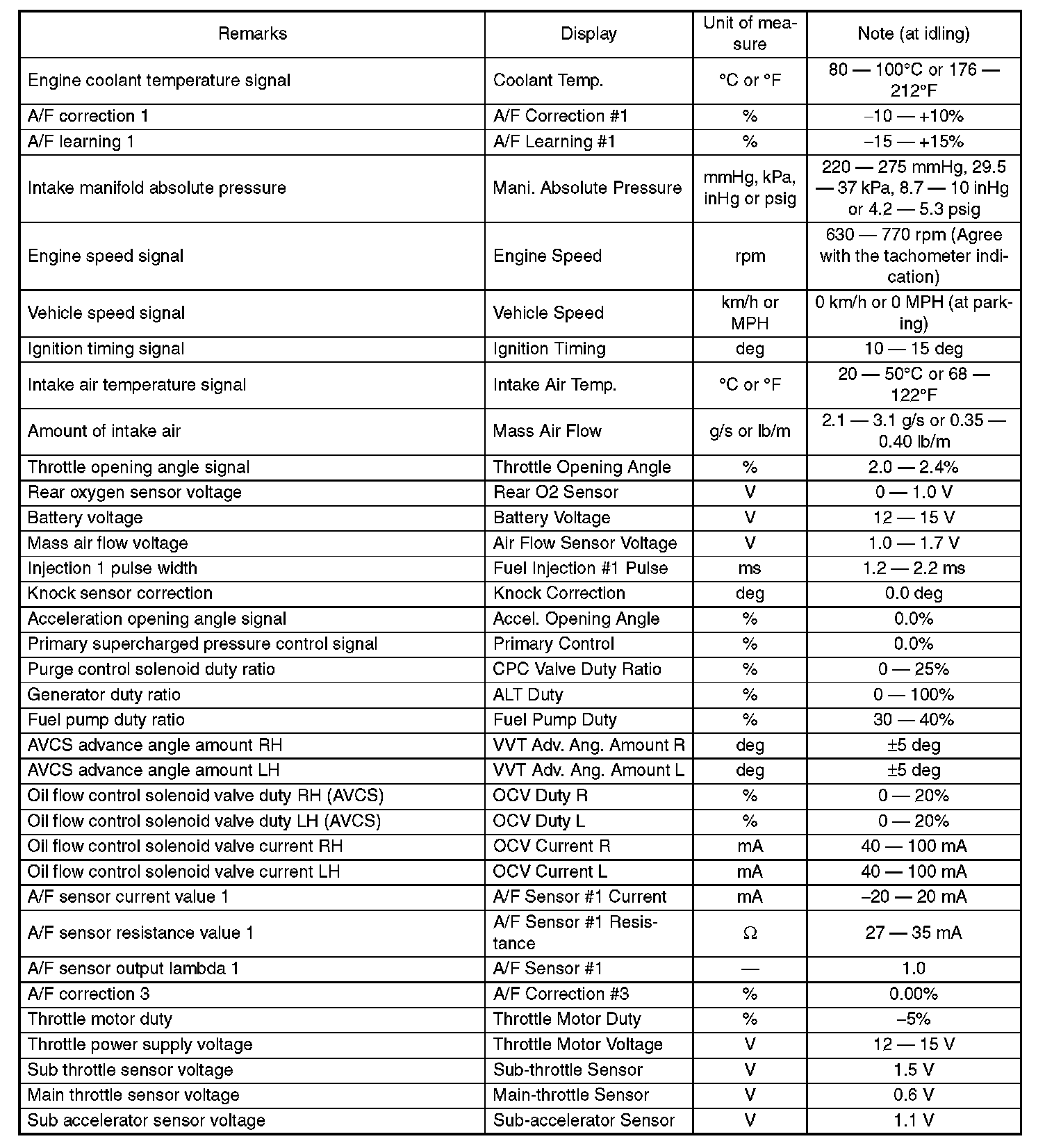5. READ CURRENT DATA FOR ENGINE (OBD MODE)