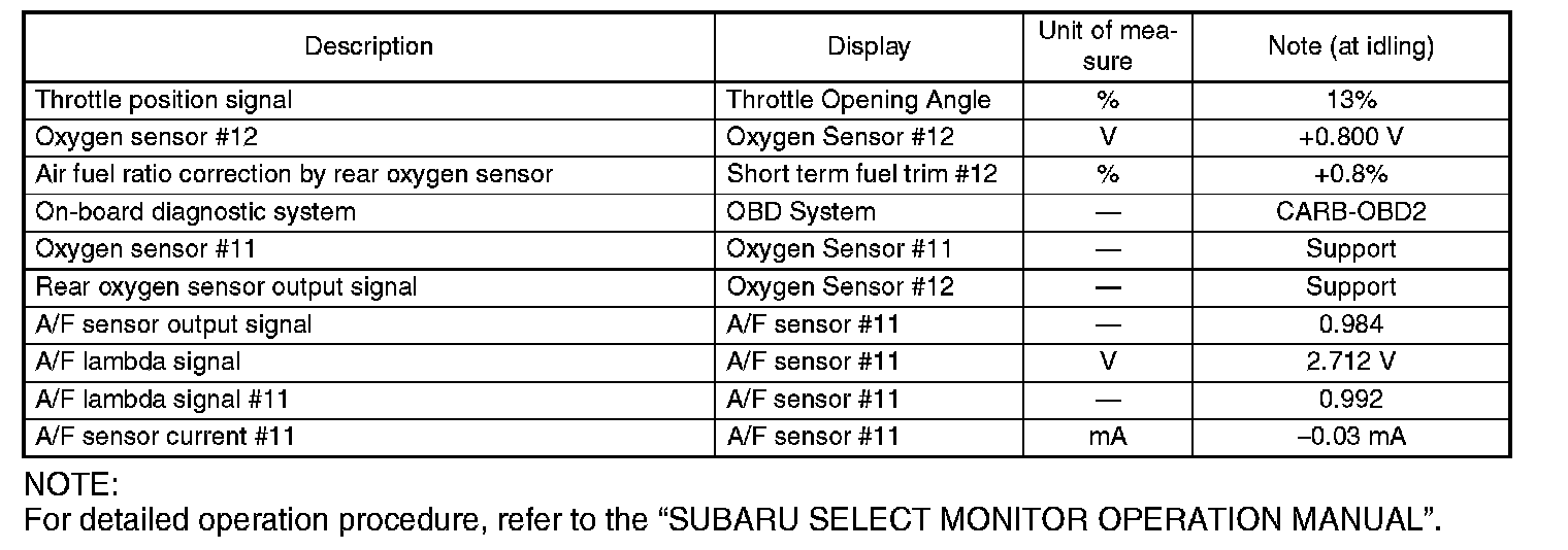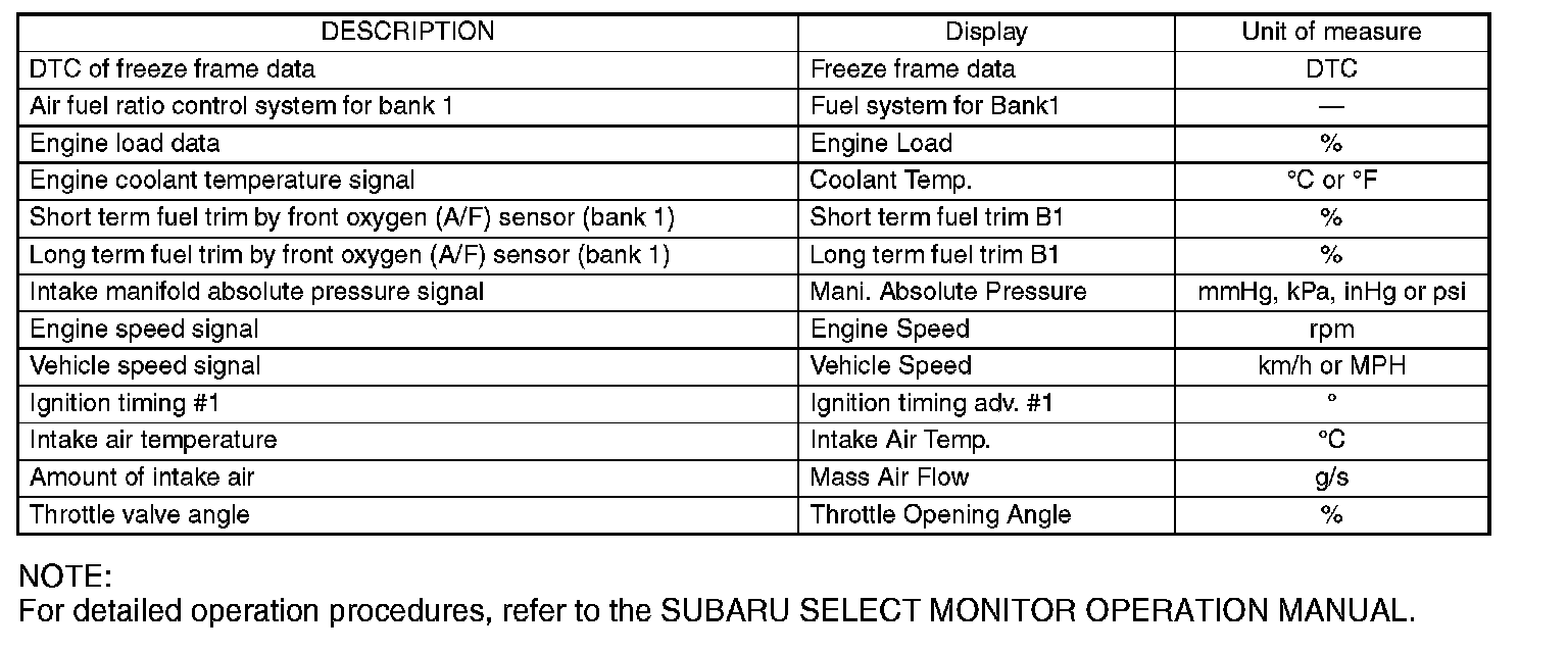 NOTE: For detailed operation procedure, refer to the "SUBARU SELECT MONITOR OPERATION MANUAL".