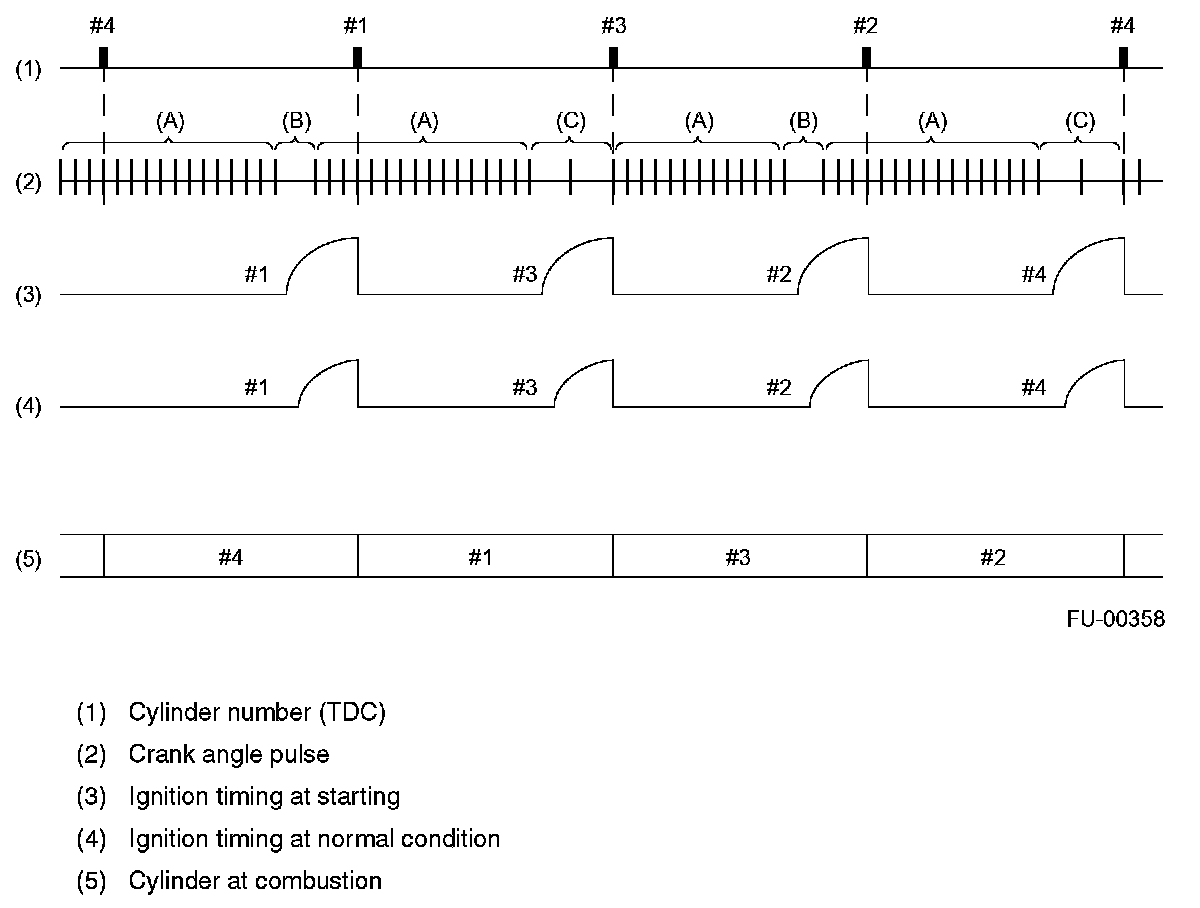 - The ECM judges that the No. 1 and No. 2 cylinders are at TDC when it detects the range (B), and that the No. 3 and No. 4 cylinders are at TDC when it detects the range (C).
