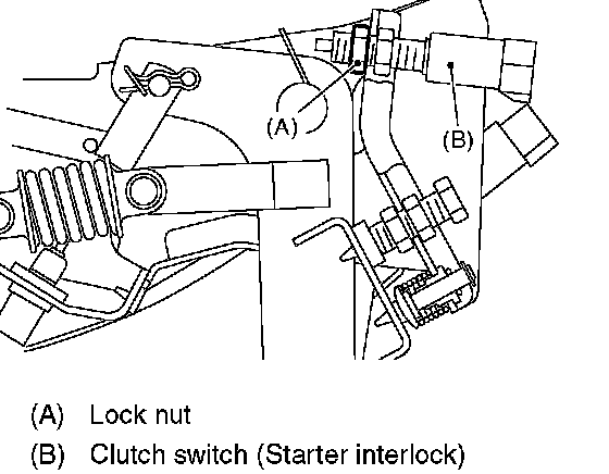 1. Loosen the clutch switch mounting lock nut (Starter interlock).