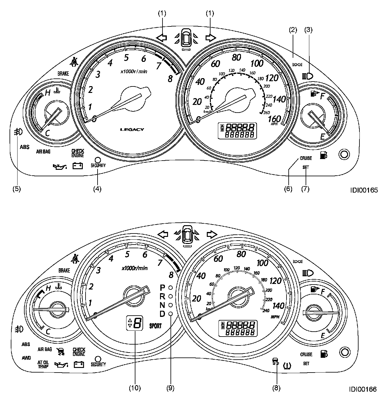9. AT selector lever position indicator (AT)