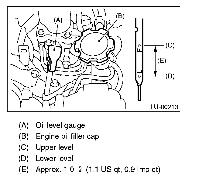 8. After the engine stops, recheck the oil level. If necessary, add engine oil up to the upper level on level gauge.