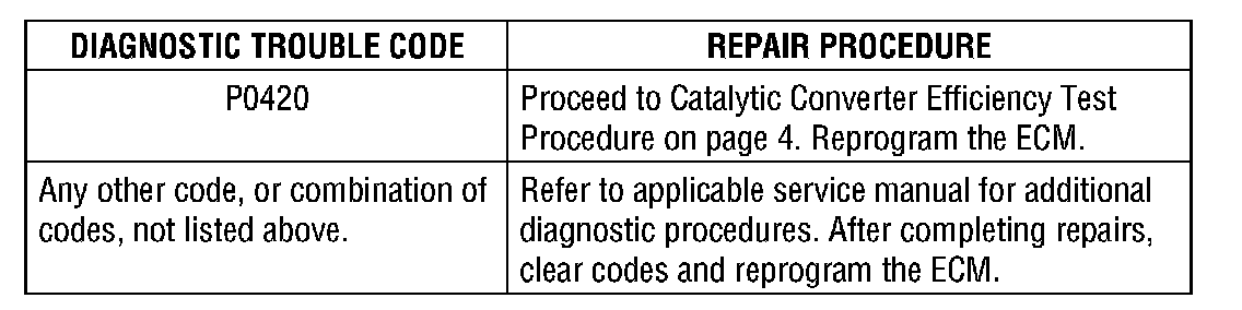 ECM reprogramming should be performed after finishing all the procedures below, only when troubleshooting for P0420 was necessary: