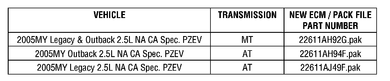 Subaru of America, Inc. (SOA) has determined that vehicles affected by this Service Program require ECM reprogramming.