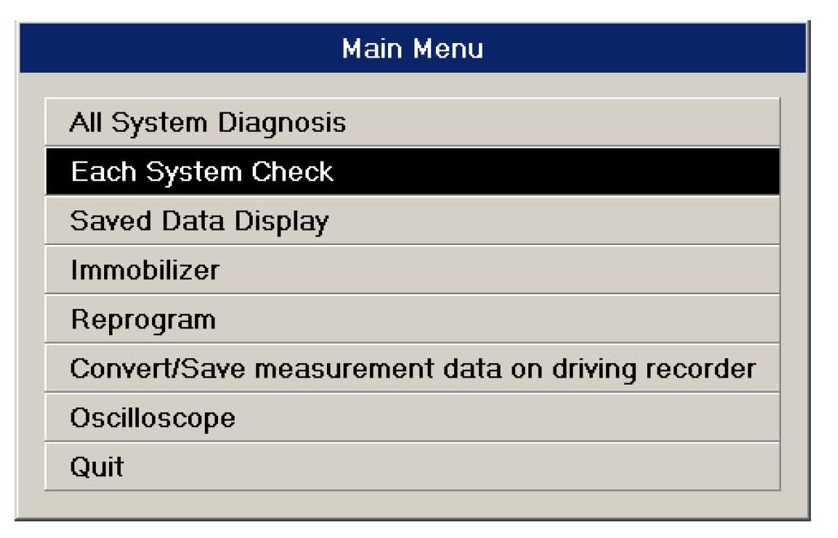1. From main menu of SSMIII, select the Each System
