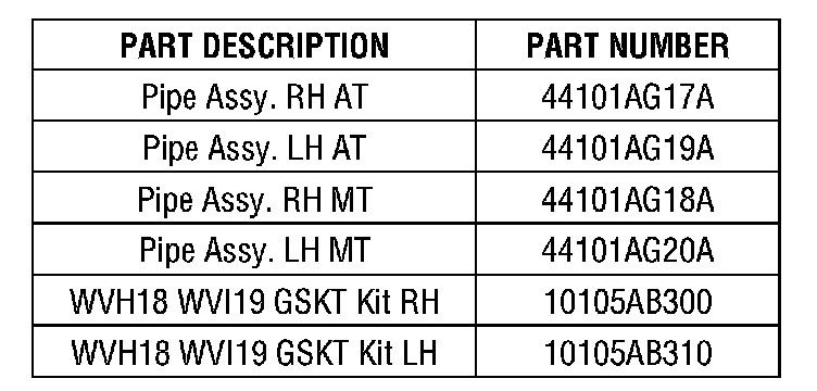 If catalytic converter replacement is necessary, refer to the following parts list: