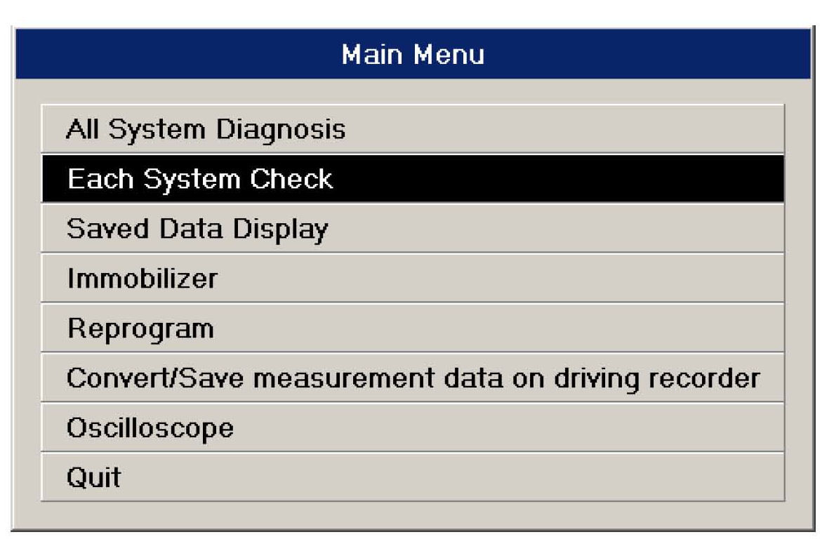 1. From main menu of SSMIII, select the Each System Check