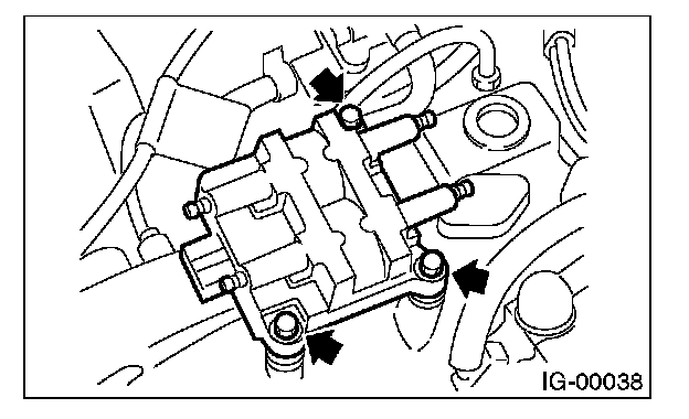 4. Remove the bolt which secures the ignition coil and ignitor assembly to intake manifold.