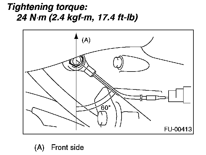 NOTE: Extraction area of knock sensor cord must be positioned at a 60 degree angle relative to the engine rear.
