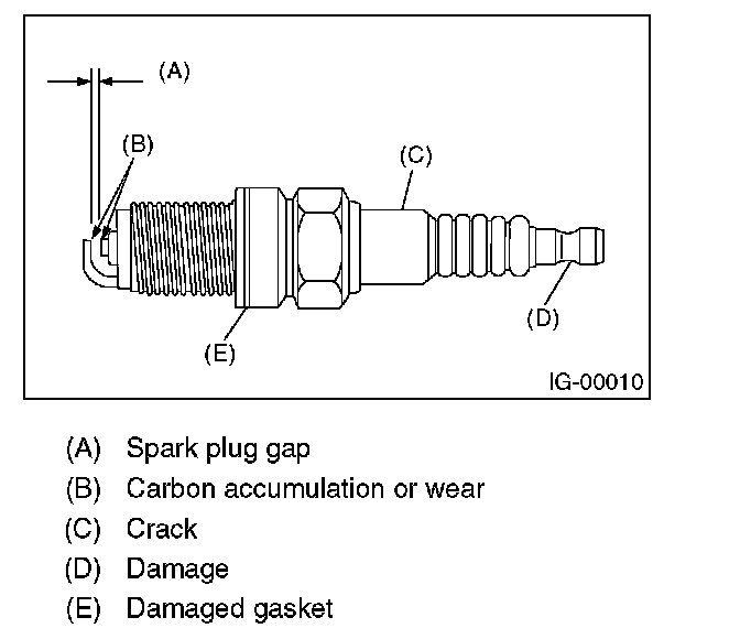 Check the electrodes and inner and outer ceramic insulator of plugs, noting the type of deposits and the degree of electrode erosion.